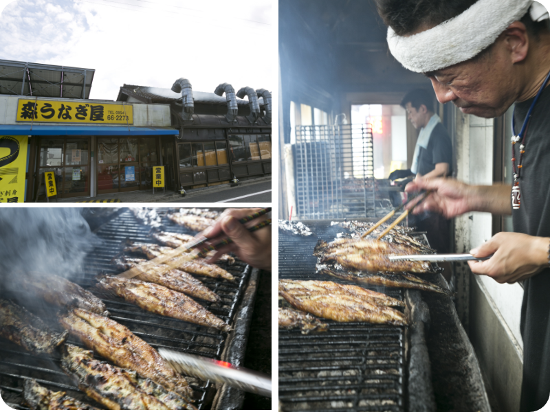森うなぎ屋は、佐賀県嬉野市で70年以上続く、老舗の炭火焼きうなぎ店。扱ううなぎは生産量日本一の鹿児島県の養鰻場から生きたまま届く若鰻。皮が柔らかく身に脂がのり、小骨も少なく美味なウナギを、新鮮なまま捌きます。